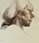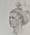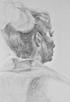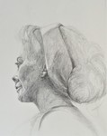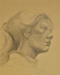 Portret en pofil met haar opgestoken, met potlood getekend. Ingelijst in passe-partout 80 x 80.