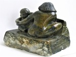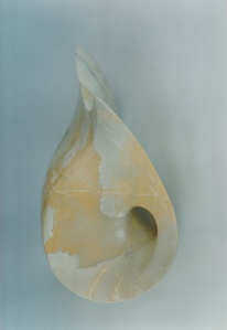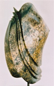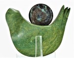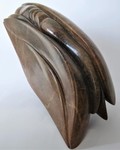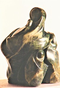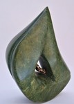 Beweging, een donkere kleur speksteen in ronde vormen met opening. (13)
