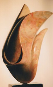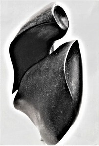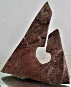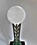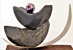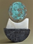 Metafysische Transcendentie.Draaibaar object speksteen, metaal en glas