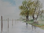 Oude IJssel bij Doesburg, oevers onder water, verkocht.