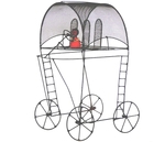 Het geheel is los schommelend op een houten sokkel van 4 X 20 x 14