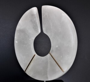 2021Lucida Aureus . Een gebroken cirkel met 2 goudstaafjes witte albast met goud 14 x 14 x2