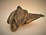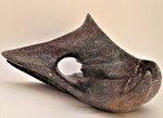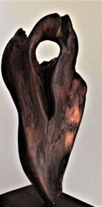 Beweging, een donkere kleur speksteen in ronde vormen met opening. (13)