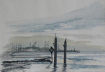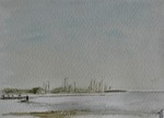 Kijk op de jachthaven van Vlieland op aquarelpapier met structuur.(36)