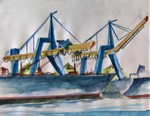 Blauwe kranen in de haven van Rotterdam. (12)