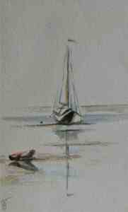 Drie scheepjes op het droge wad van Vlieland.(46)