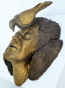 Trianuskop in gietsteen en gepolychromeerd.